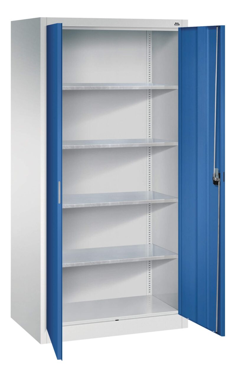 Ordnungsschrank – 1950 x 950 x 430 mm H x B x T Türen mit Acrylglasscheiben, höhenverstellbaren Fachböden je 80 kg Tragkraft bei gleich verteilter Last. höhenverstellbaren Fachböden je 80 kg Tragkraft bei gleich verteilter Last.