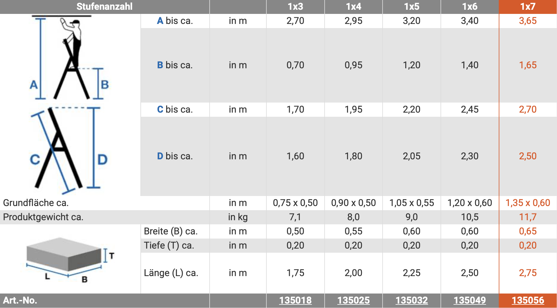 - Anzahl Stufen inkl. Plattform: 4 Stück